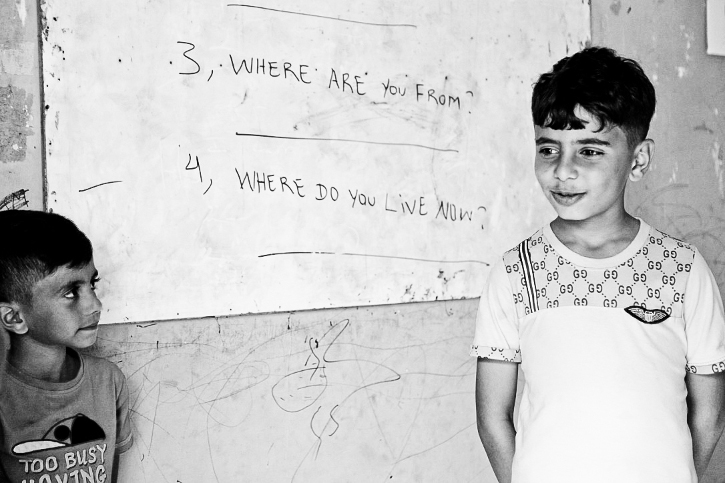 Refugee children learning English at Kalsoom's school, the Cipayung Refugee Educational Center. (Angela Richardson)