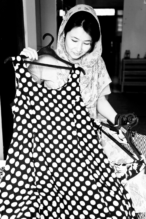 Kalsoom Jaffari showing some of the beautiful dresses made by the women from her Refugee Women Support Group (Angela Richardson)